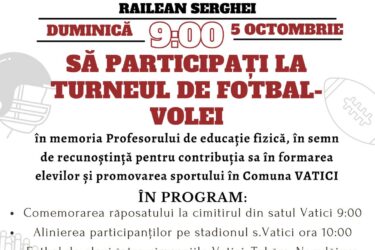 Omagiu profesorului de educație fizică, Railean Serghei Primăria comunei Vatici, în frunte cu primarul Dohocher Petru, în colaborare cu profesorii de educație fizică — Ilie Proferian, Colesnic Petru și Rusnac Iurie — și cu susținerea partenerilor, au adus un omagiu în memoria regretatului profesor de […]