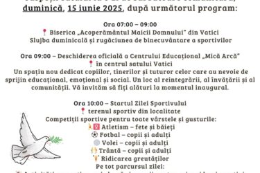 ANUNȚ SPRE ATENȚIA CETĂȚENILOR DIN COMUNA VATICI Vă invităm să participați SÎMBĂTĂ, 29 martie 2025, la ora 14:00, în incinta Primăriei Vatici (S.Vatici), DUMINICĂ, 30 martie 2025, la ora 12:00, LA IZVOARE (Lângă Bandur Valeriu s.Tabăra), DUMINICĂ, 30 martie 2025, la ora 14:00, […]